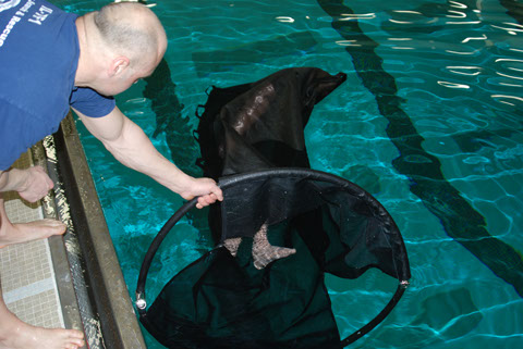 Step 1 - Body being placed in x7ix Underwater Body Bag